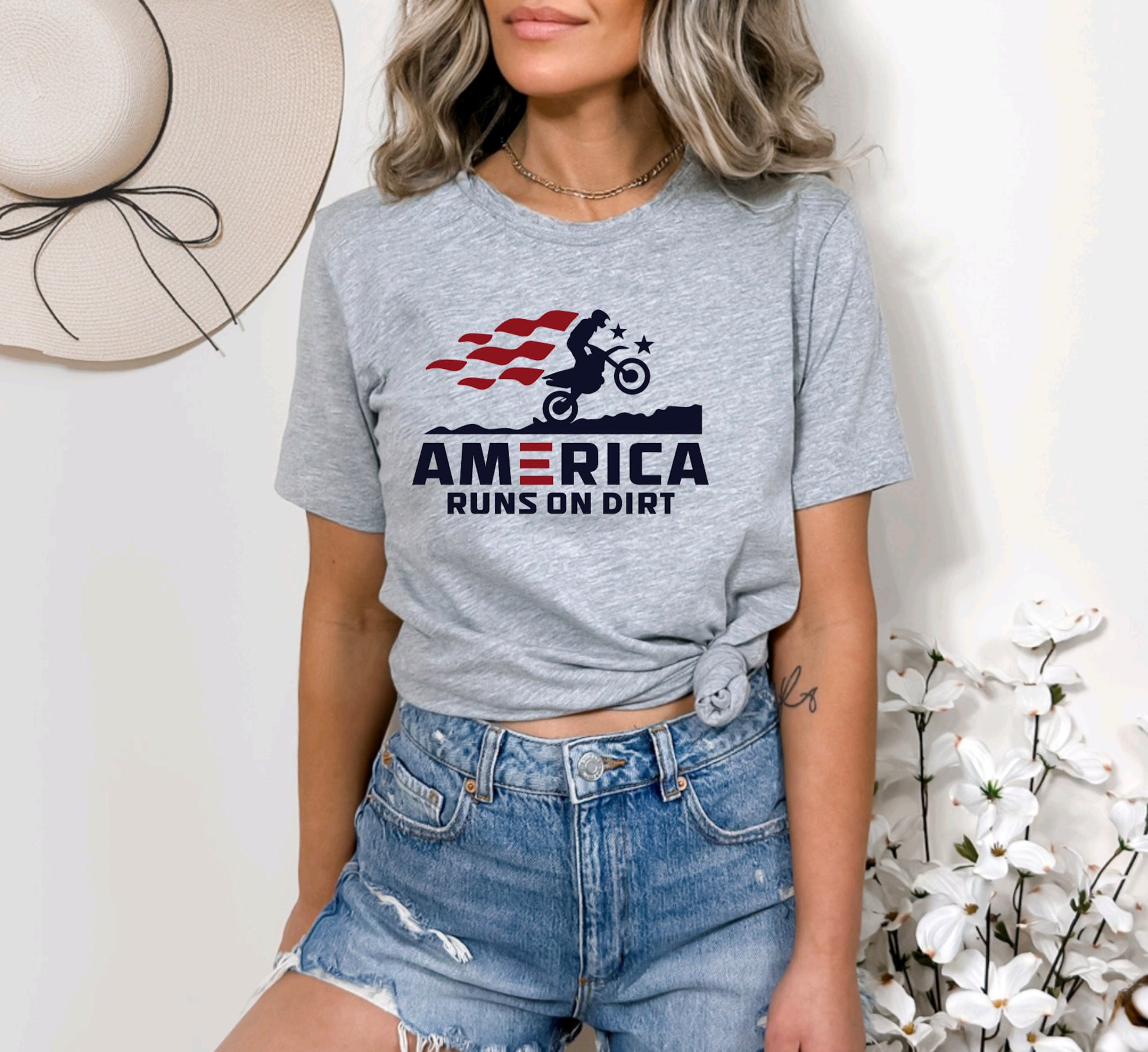 This America Runs on Dirt Graphic Tee combines comfort and style with a bold statement. Made from soft, durable fabric, it offers lasting wear for outdoor enthusiasts and casual wearers alike. The eye-catching graphic celebrates a rugged, adventurous spirit, making it a perfect choice for those who appreciate both fashion and function in their wardrobe.