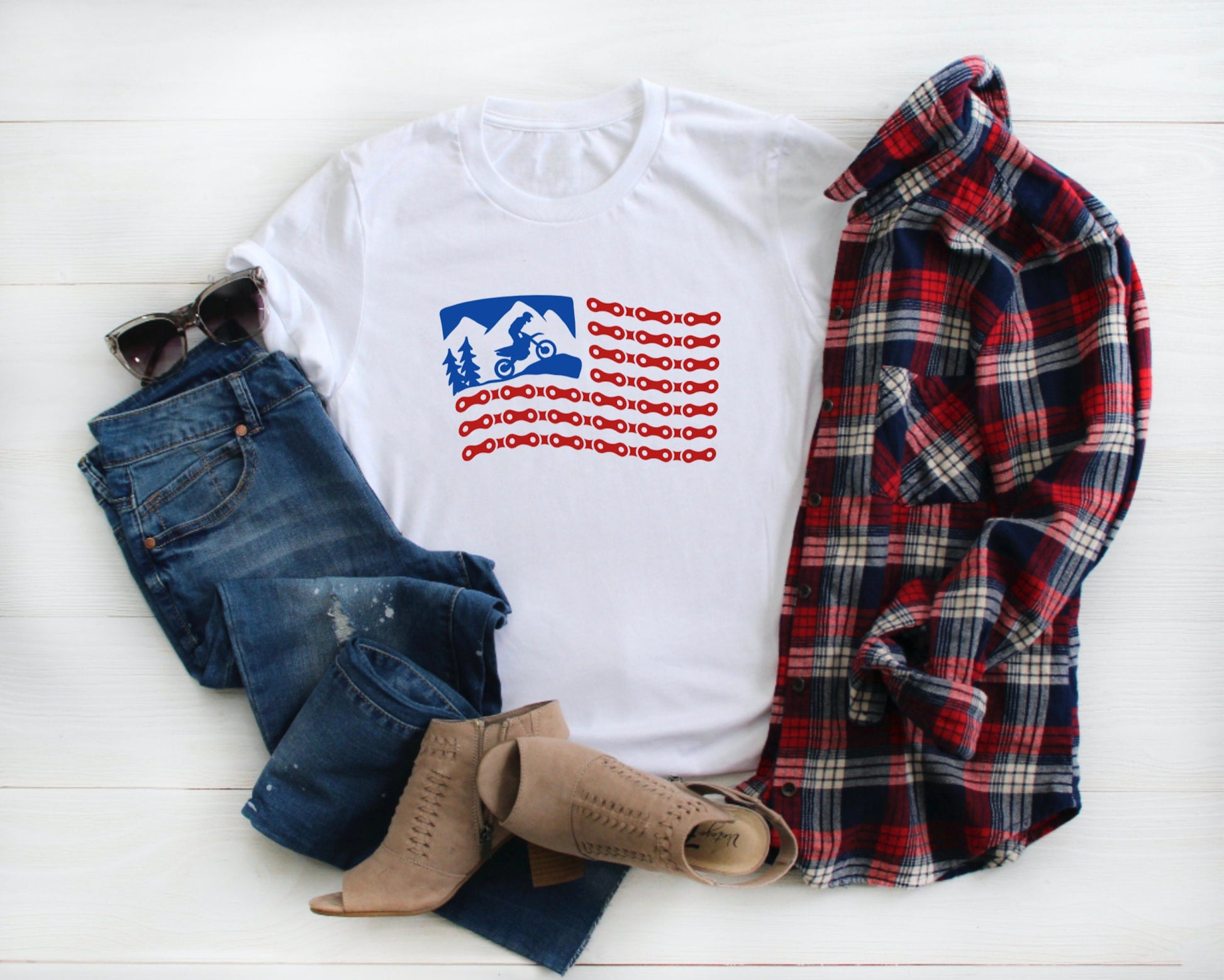 Show your passion for the thrill of dirt biking with the Dirt Bike Flag Tee. Designed for comfort and style, this tee features a bold flag graphic that celebrates the spirit of the sport. Its soft fabric ensures you stay comfortable whether you're on the trails or relaxing afterward. Perfect for riders and fans alike, this tee supports your love for dirt biking every step of the way.