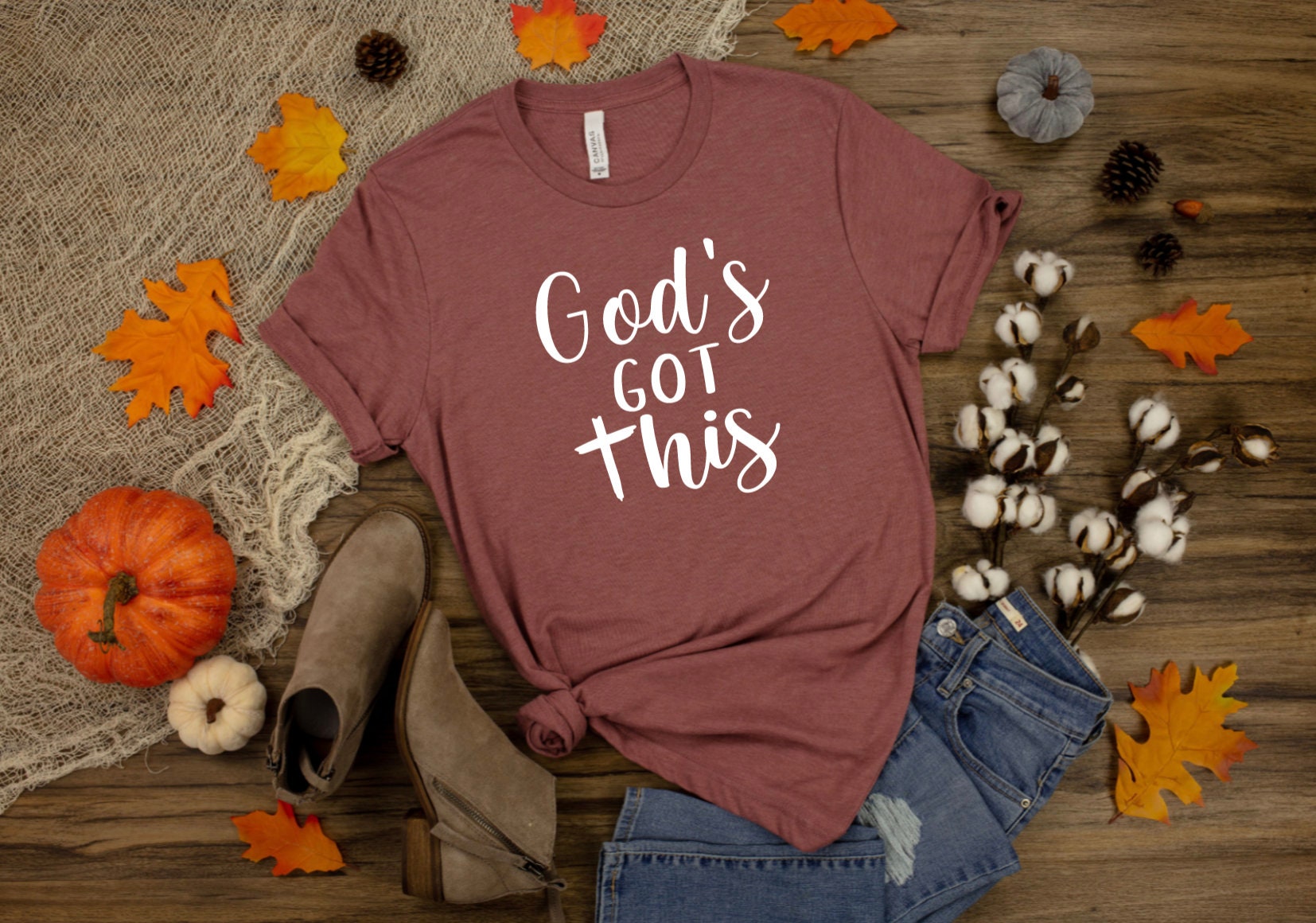 Embrace comfort and encouragement with the God's Got This Graphic Tee. Crafted for everyday wear, this soft, breathable shirt serves as a gentle reminder of faith and resilience. Its inspiring message provides motivation and reassurance, perfect for uplifting your spirit or sharing positivity with others. Ideal for casual outings or quiet moments, this tee combines meaningful style with lasting comfort.