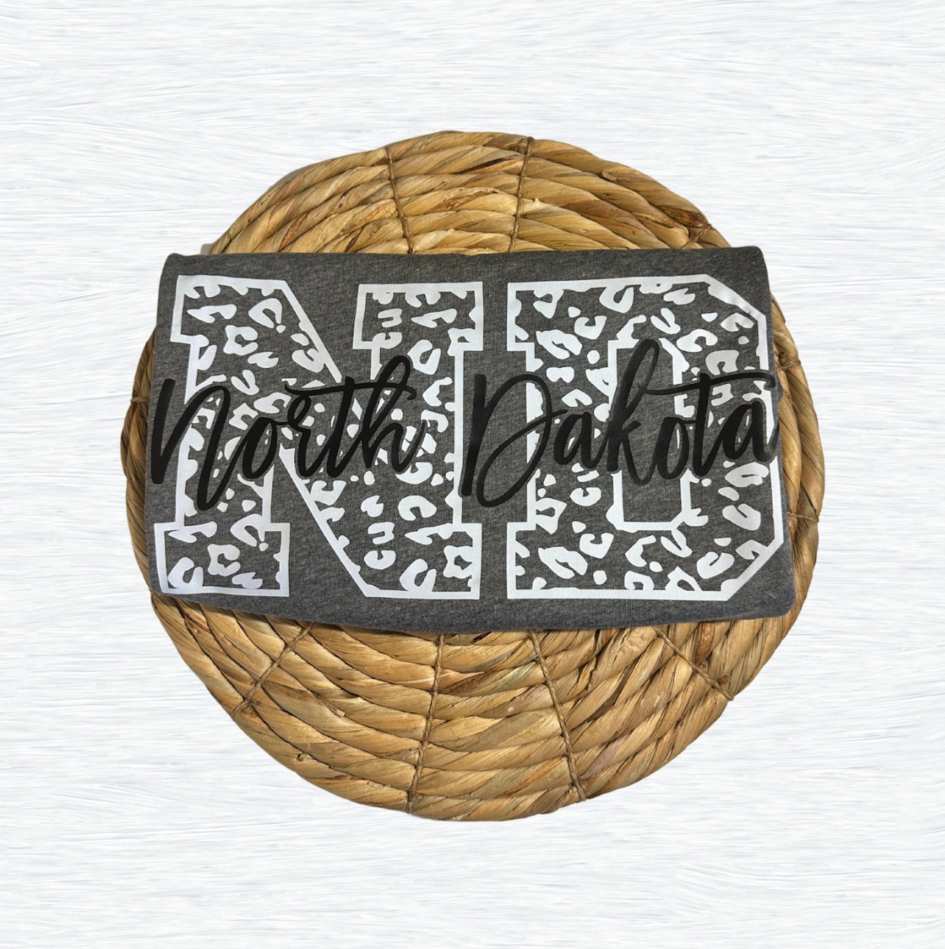Celebrate your North Dakota pride with this comfortable leopard graphic tee. Made from soft fabric, it offers easy, all-day wear while showcasing a bold, stylish design that stands out. Perfect for casual outings or layering, this tee blends local spirit with trendy flair, making it a versatile addition to your wardrobe.