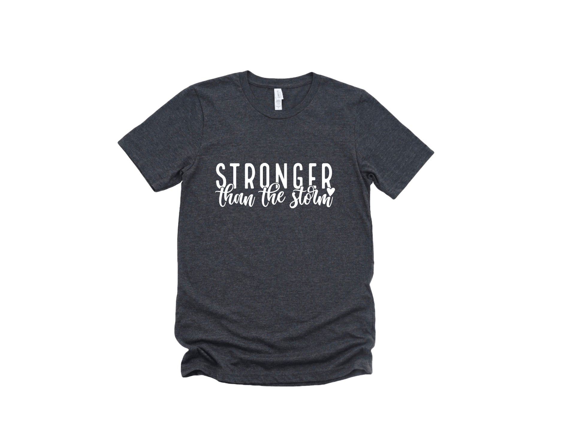 The Stronger Than The Storm Graphic Tee combines comfort and resilience with a bold design symbolizing strength in adversity. Crafted from soft, durable fabric, it offers lasting wear for everyday use. Its striking graphic serves as a reminder of perseverance and courage, making it ideal for those who value meaningful apparel with a message.